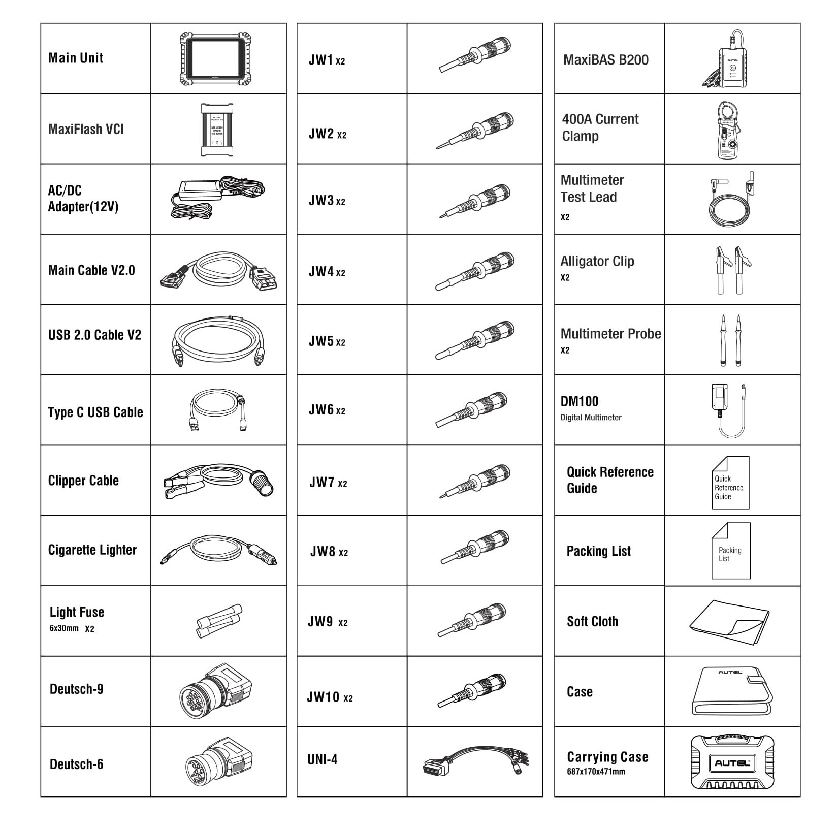 Paket içeriği, ticari araçlarda teşhis süreçlerini tek setle tamamlayacak şekilde hazırlanmıştır. Cihazla birlikte gelen Bluetooth destekli VCI / J2534 pass-thru arayüzü sayesinde araca kablosuz bağlanarak daha esnek çalışma alanı elde edersiniz. Ayrıca set içerisinde yer alan MaxiBAS B200 akü / marş / şarj sistemi test cihazı, araçların elektriksel sağlığını hızlıca kontrol etmeyi kolaylaştırır. Ölçüm ve test ihtiyaçları için timsah kıskaçlar, multimetre ve akım pensleri (amp clamp) de pakete dahildir. Bu sayede arıza tespiti sırasında hem diagnostik hem elektriksel ölçümleri aynı ekosistemde yönetebilirsiniz.
