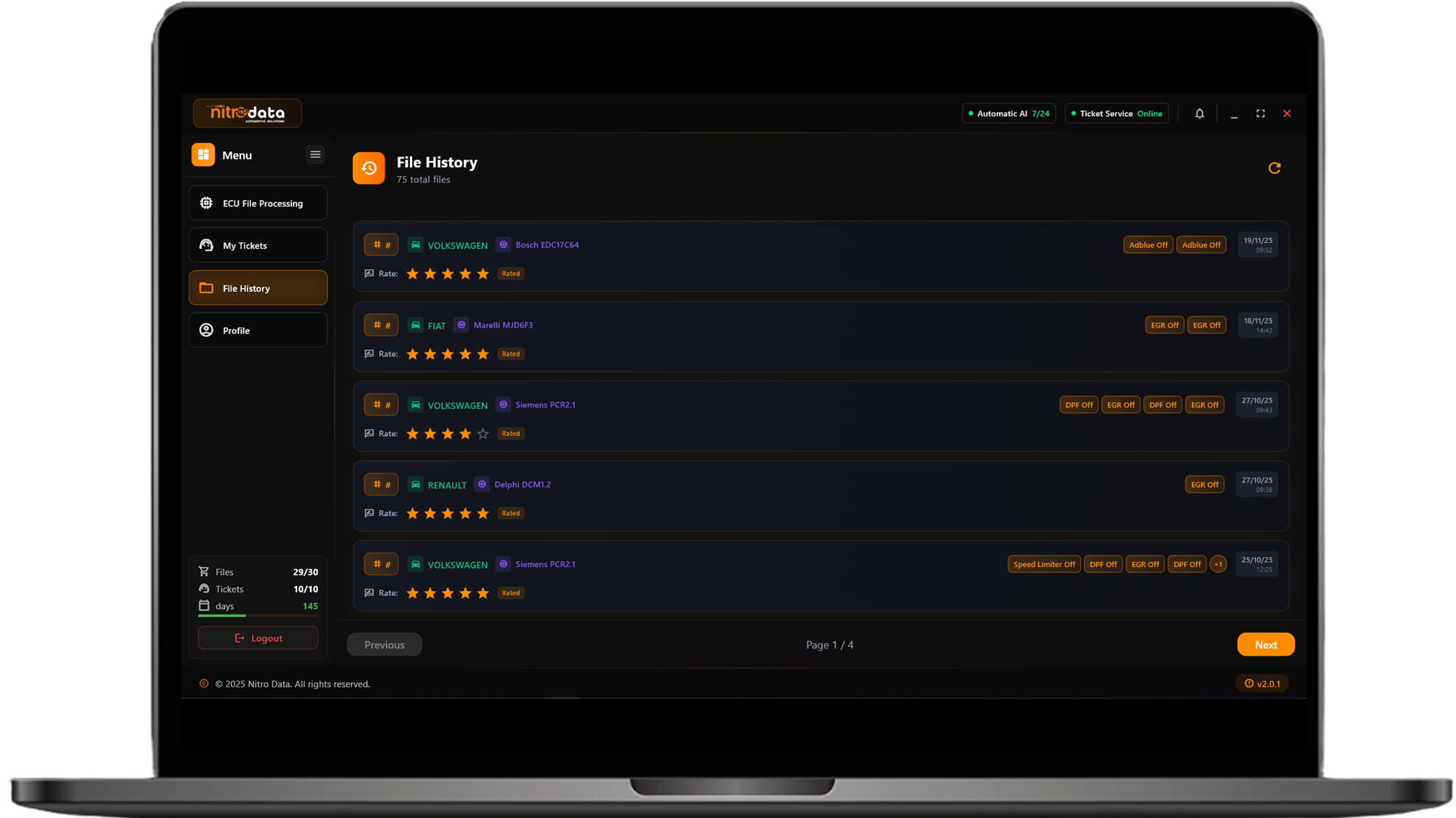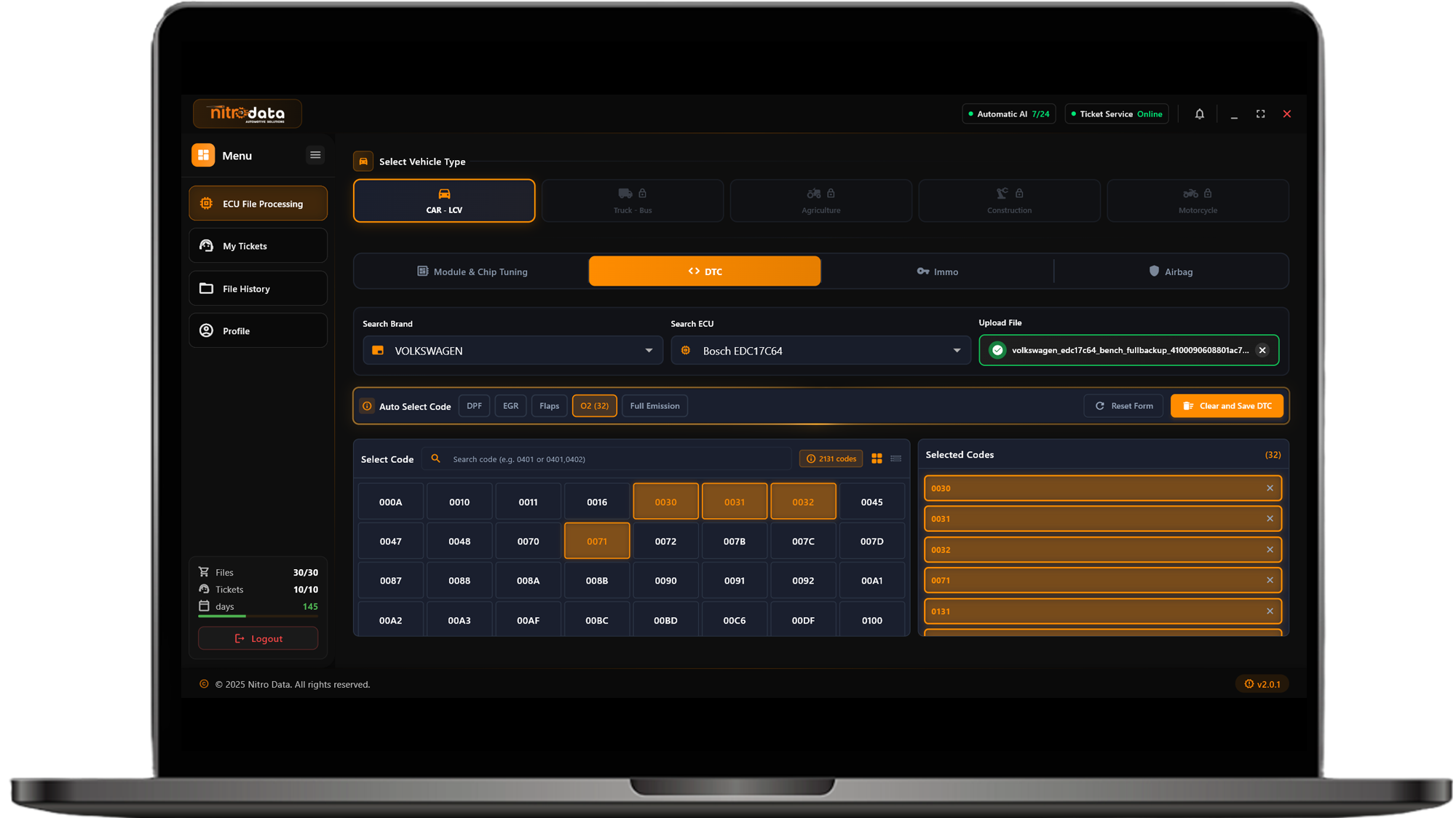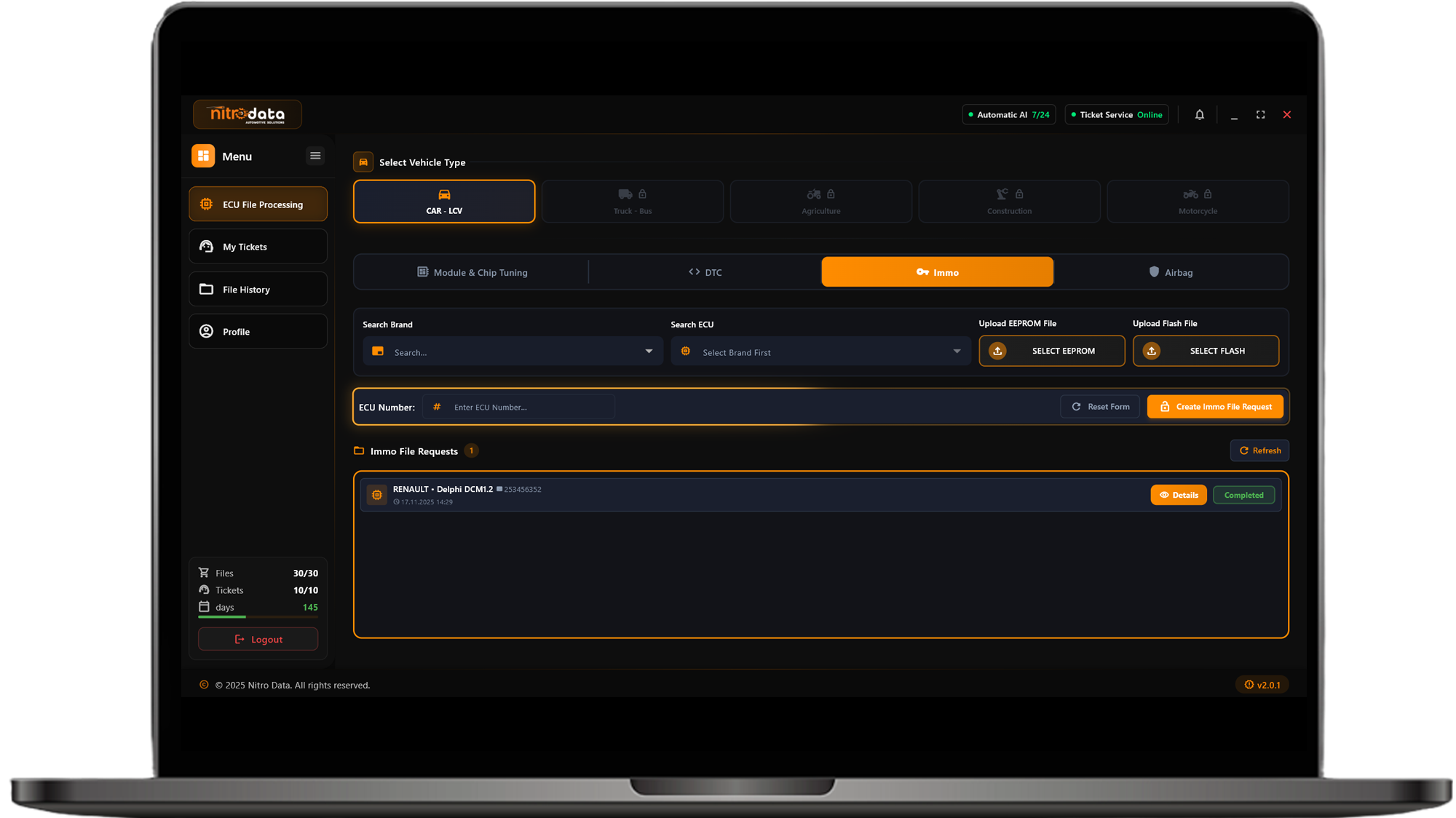 NitroData, yapay zeka teknolojisiyle ECU dosyalarını hızlı ve hassas şekilde analiz eden yenilikçi bir otomotiv yazılımıdır. Sistem, yüklediğiniz dosyayı zengin veritabanıyla eşleştirerek otomatik olarak işler ve saniyeler içinde profesyonel kalitede çözümler sunar.